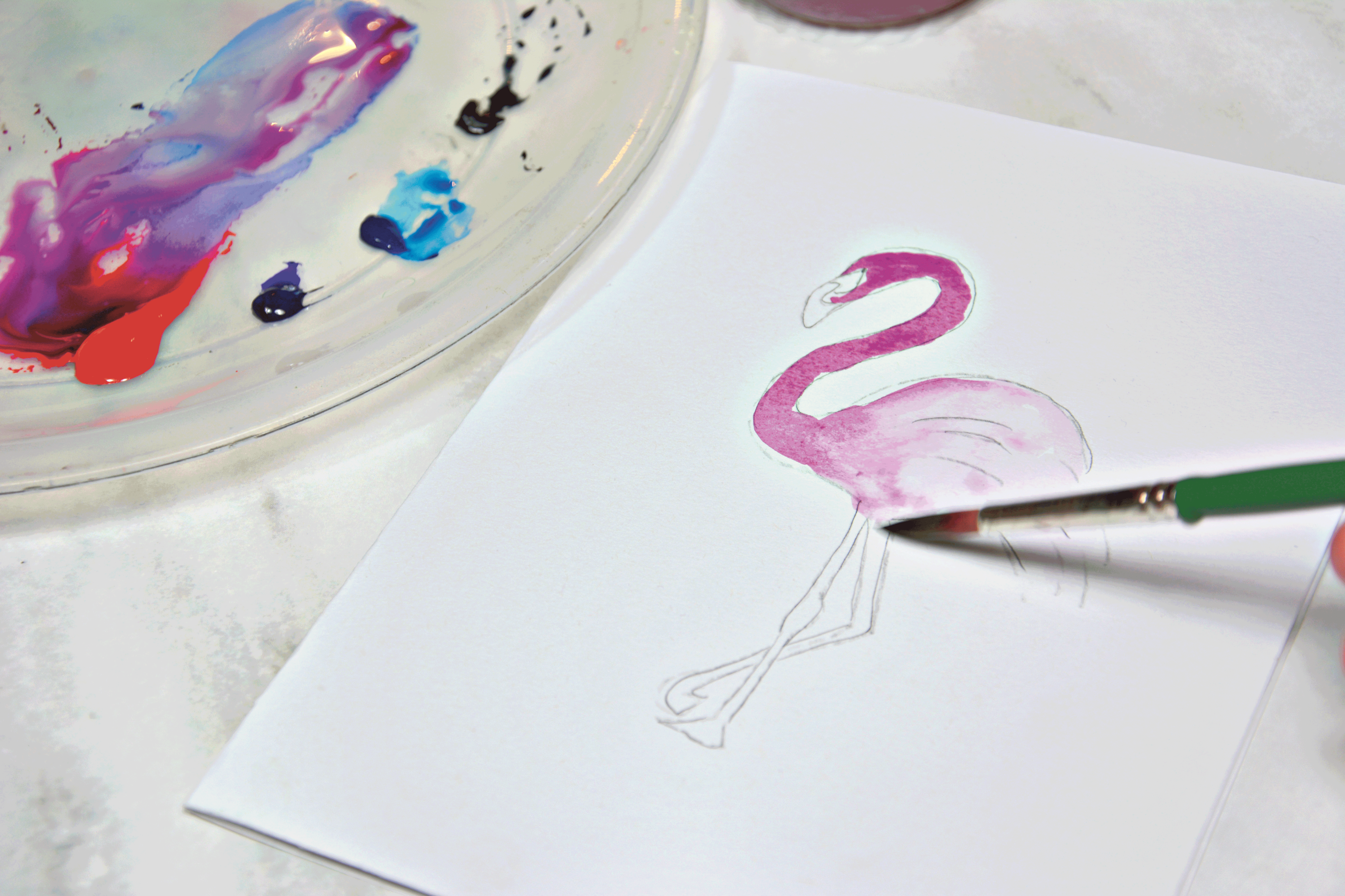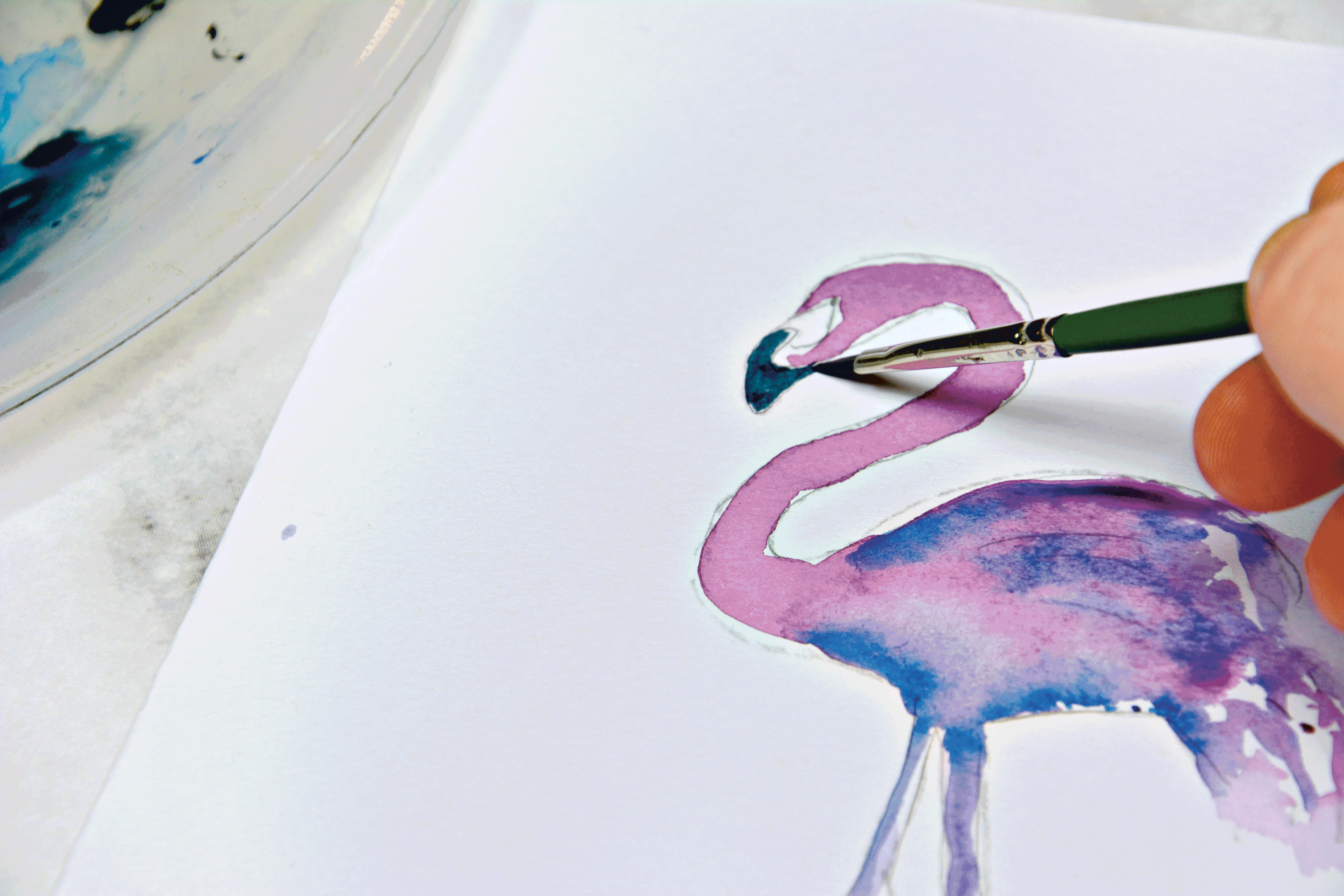 Aquarell-Flamingo-Karte Marabu Aqua Ink