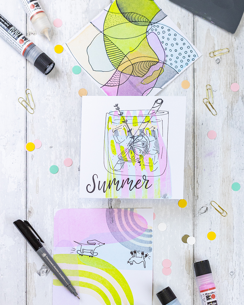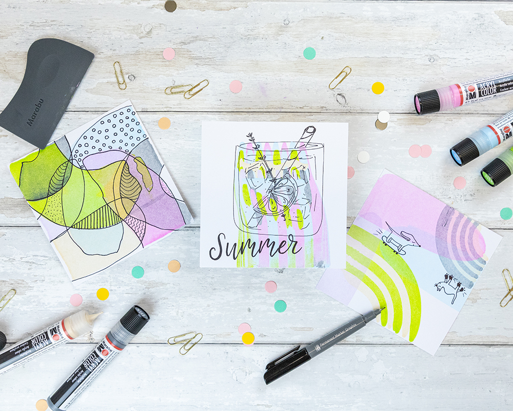 Karten gestalten mit Marabu SQUEEGEE ART SET PASTEL