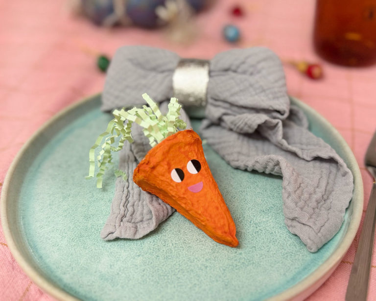 Zu Ostern hat man bestimmt ganz viele Eierkartons übrig. Nicht wegwerfen, diese eignen sich fantastisch für das nächste Kreativprojekt. Mit ein bisschen KiDS Little Artist Farbe und grünem Ostergras lassen sich daraus kleine Karotten basteln, die sich toll auf dem Ostertisch als Dekoration machen.