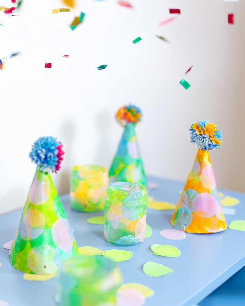 Mit farbenfroher Serviettentechnik verwandeln wir einfache Partyhütchen und Windlichter in einzigartige Hingucker. Aus zarten Serviettenmotiven werden kleine Konfetti-Kreise, die jedem Deko-Element eine fröhliche, verspielte Note verleihen. Die Bastelideen sind schnell umgesetzt und machen schon beim Gestalten richtig Spaß. Perfekt für Fasching, Karneval, Kindergeburtstag und selbstverständlich für jede andere Party!