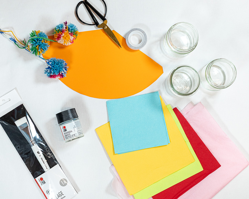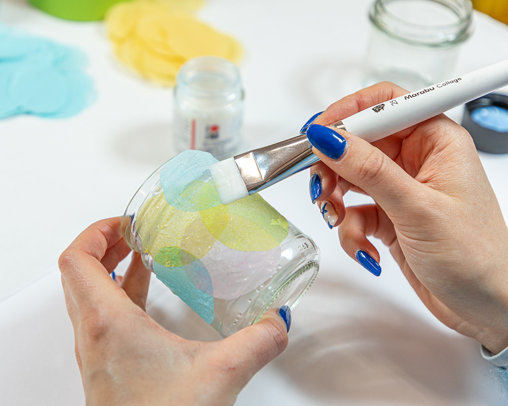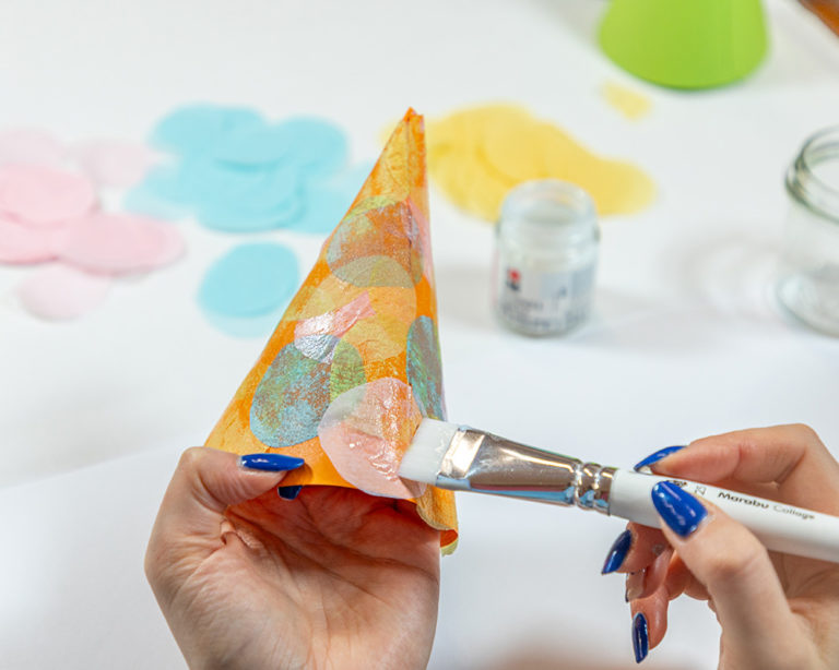 Konfetti-Deko mit Marabu Decoupage & Serviette Lack und Kleber
