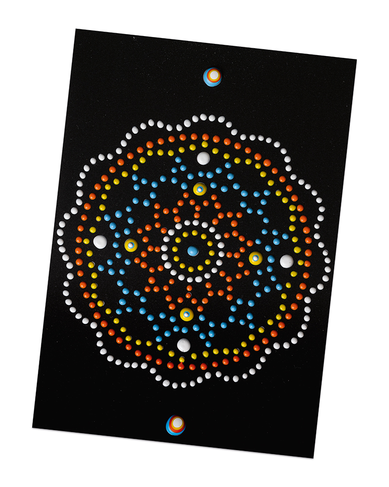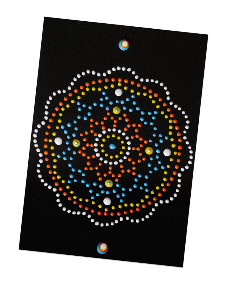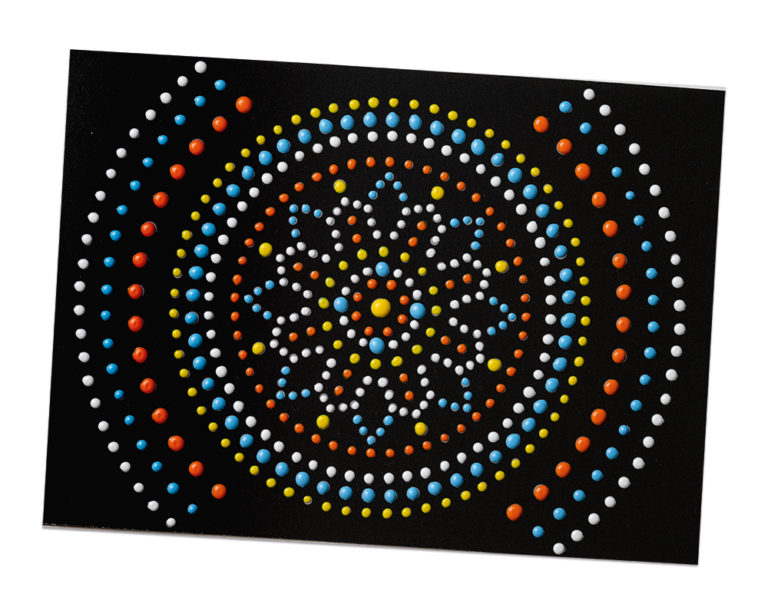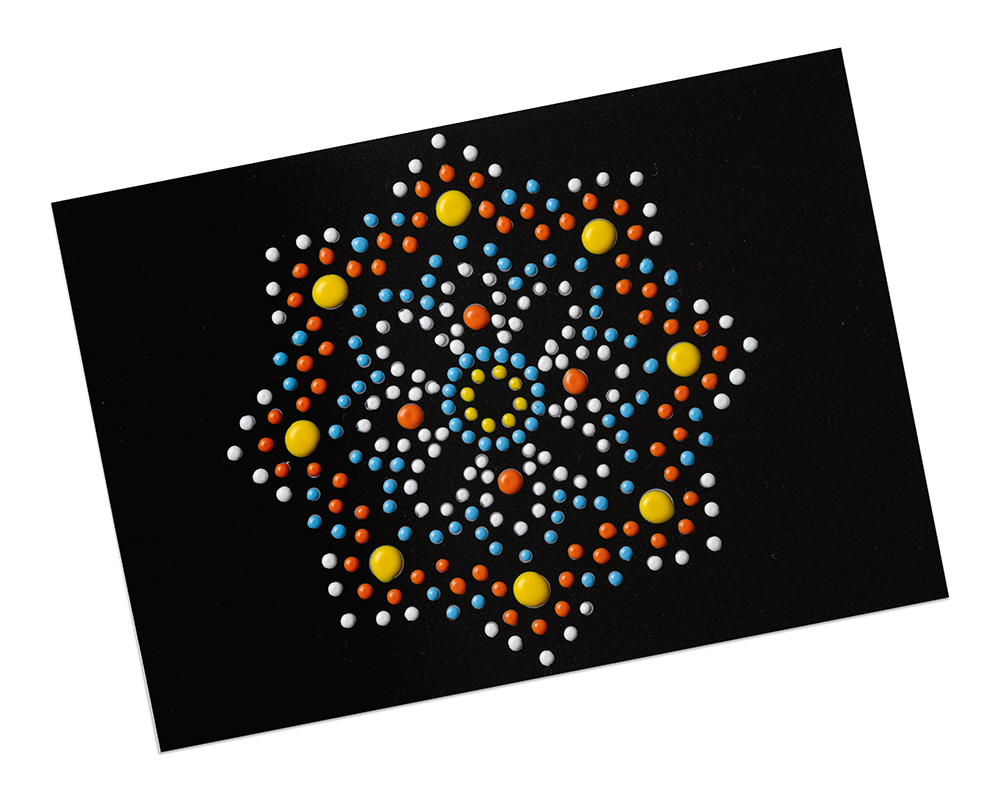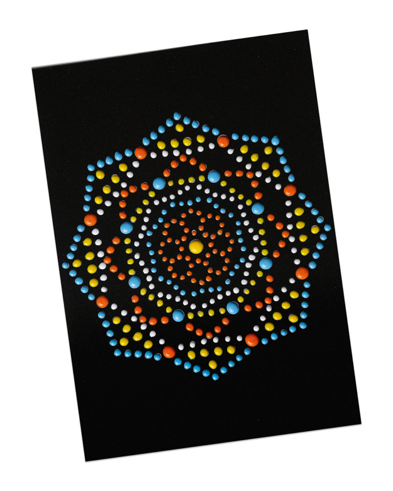 Kleine Kunstwerke, ganz einfach Punkt für Punkt, gelingen mit dem Mandala-Set. Die aufgedruckten Mandala-Motive total entspannt mit den Dot Pens nach Belieben gestalten, trocknen lassen und dekorieren oder verschenken.