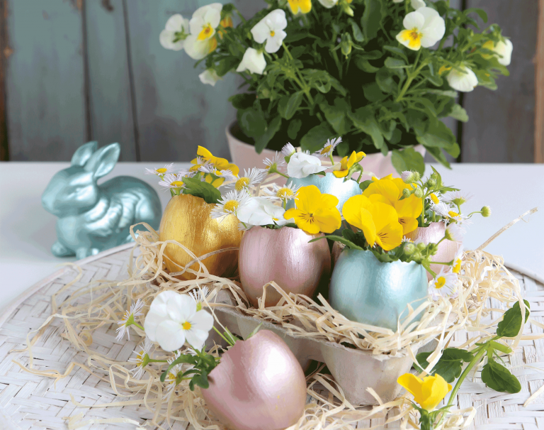 Einfach glänzend sehen diese hübschen Eierschalen aus, wenn sie mit Marabu Colorado Gold in kleine Schmuckstücke verwandelt wurden. Bepflanzen Sie die Vasen mit kleinen Blümchen und dekorieren Sie sie auf Ihrem Festtagstisch! Die Gäste können kommen!