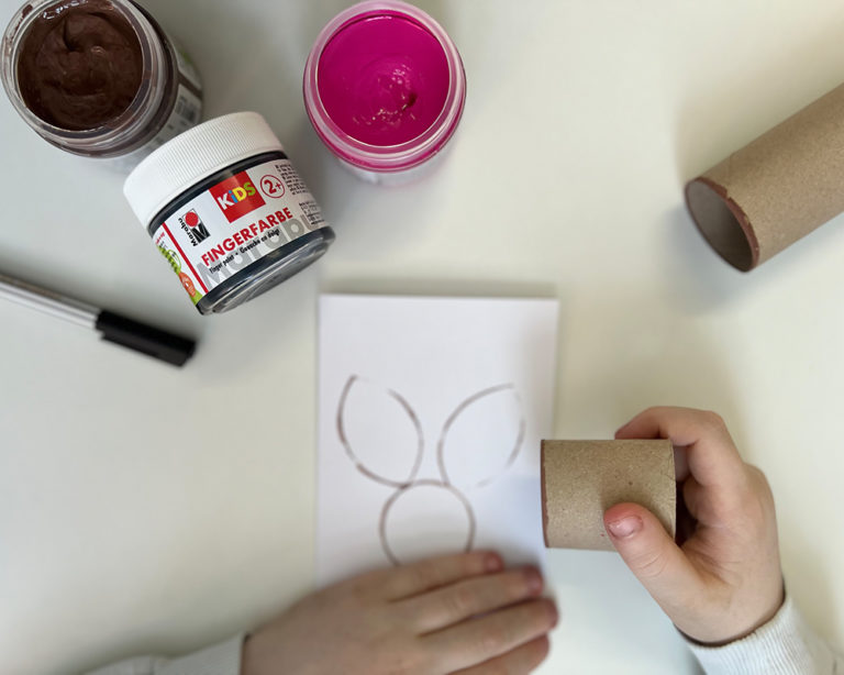 Osterhasen stempeln mit Papierrollen und Marabu KiDS Fingerfarbe