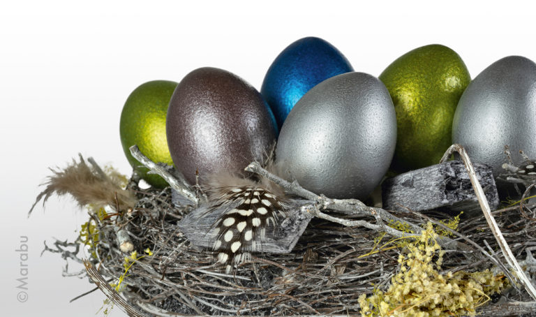 Die fantastischen Metallic-Farbtöne von Marabu Colorado Gold zaubern schimmernde Akzente ins Osternest. Ganz einfach auftupfen und fertig ist der Metallic-Look!