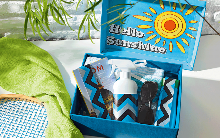 Eine gemeinsame Reise mit der besten Freundin ist was Tolles – diese hübsch gestaltete Box enthält den passenden Geschenkgutschein und praktische Reiseutensilien.