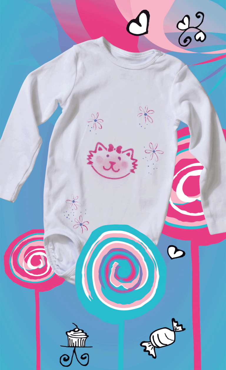 Einen trendigen Babystrampler als individuelles und kreatives Geschenk zur Geburt? Mit dem Marabu Textil Trend-Set „SWEET CANDY“ und hübschem Schablonenmotiv entstehen im Nu zuckersüße Einzelstücke in schönen Bonbonfarben.