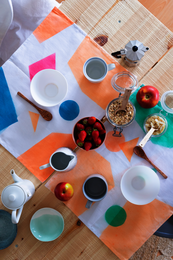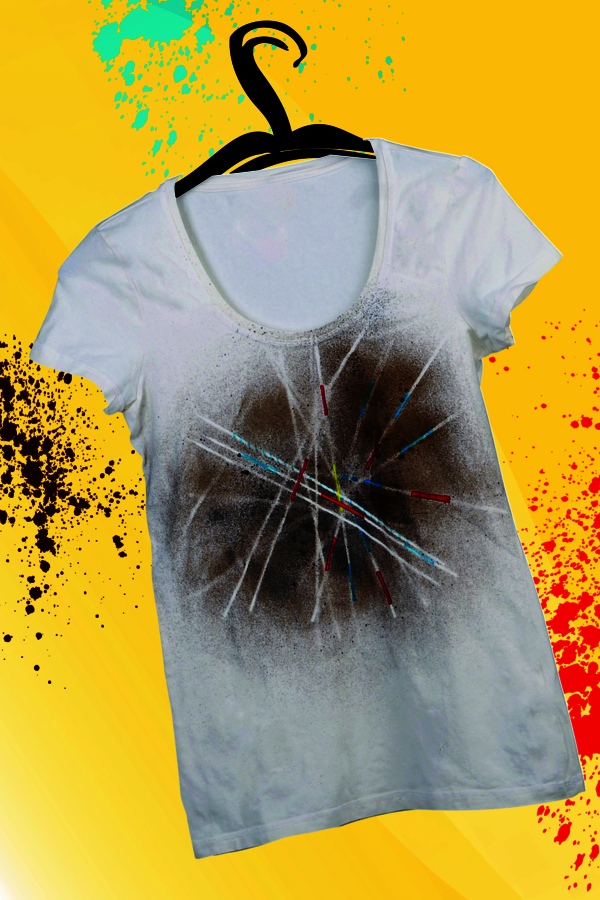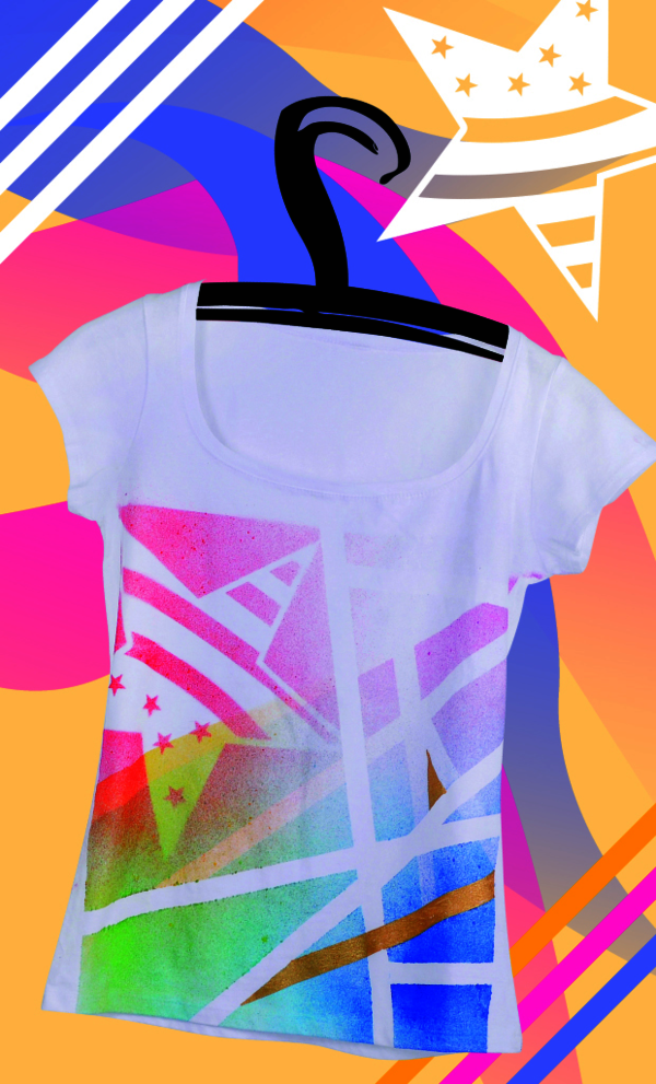 Freies Sprühen, Farbverläufe mit Marabu Fashion-Spray Bei Textilien (Baumwoll- und Mischgewebe bis max. 20 % Kunstfaseranteil) Appretur und Weichspüler auswaschen. Natürlich können T-Shirts, Kissen usw. auch ohne Motiv gestaltet werden. Dafür einfach den Stoff nach Lust und Laune mit einem oder mehreren Fashion-Spray Farbtönen besprühen. Auch tolle Farbverläufe sind mit dem Fashion-Spray möglich.Abkleben, Ablegen mit Marabu Fashion-SprayBei Textilien (Baumwoll- und Mischgewebe bis max. 20 % Kunstfaseranteil) Appretur und Weichspüler auswaschen. Um bestimmte Bereiche beim Sprühen auszusparen, können diese entweder mit einem Kreppklebeband abgeklebt oder mit Karton abgedeckt werden. So gelingen besonders schnell und einfach grafische Muster und Streifen. Dafür ein Stück Karton in das Oberteil hinein legen, so dass die Farbe nicht auf die Rückseite durchfärbt. Anschließend das T-Shirt o.ä. straff mit Klebeband auf der Unterlage befestigen. Das gewünschte Muster mit dem Klebeband abkleben oder mit Pappe ablegen. Nun mit Fashion-Spray ein- oder mehrfarbig das Textil besprühen. Klebeband nach Trocknung entfernen und kurz trocknen lassen. Zusätzlich können Marabu Silhouette-Schablonen verwendet werden. Um tolle Highlights auf dem T-Shirt zu setzen, einfach mit dem Marabu Fashion-Liner ein Linien-Muster vollflächig ausmalen oder dezente Verzierungen aufmalen. Die Textilie zum Schluss fixieren.