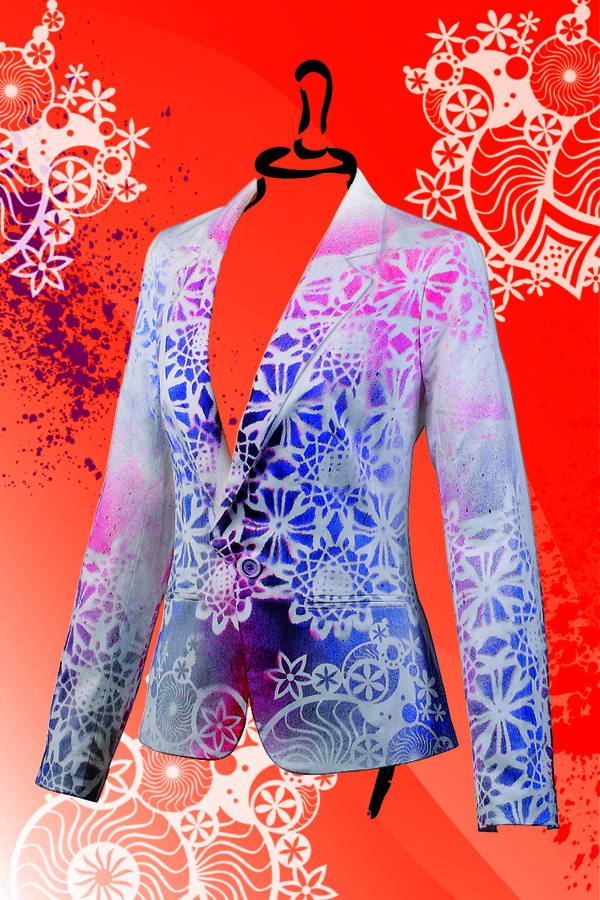 Bei Textilien (Baumwoll- und Mischgewebe bis max. 20 % Kunstfaseranteil) Appretur und Weichspüler auswaschen. Silhouette-Schablone auswählen und auf den Stoff legen. Mit beliebigem Fashion-Spray Farbton besprühen. Es können auch mehrere Farbtöne verwendet werden (nass in nass oder nach kurzer Trocknung). Um unerwünschte Farbflecken auf dem Textil zu vermeiden, die Farbe vor dem Abziehen kurz mit einem Küchenpapier von der Schablone abtupfen. Die Schablone vorsichtig anheben und sofort unter kaltem Wasser reinigen.