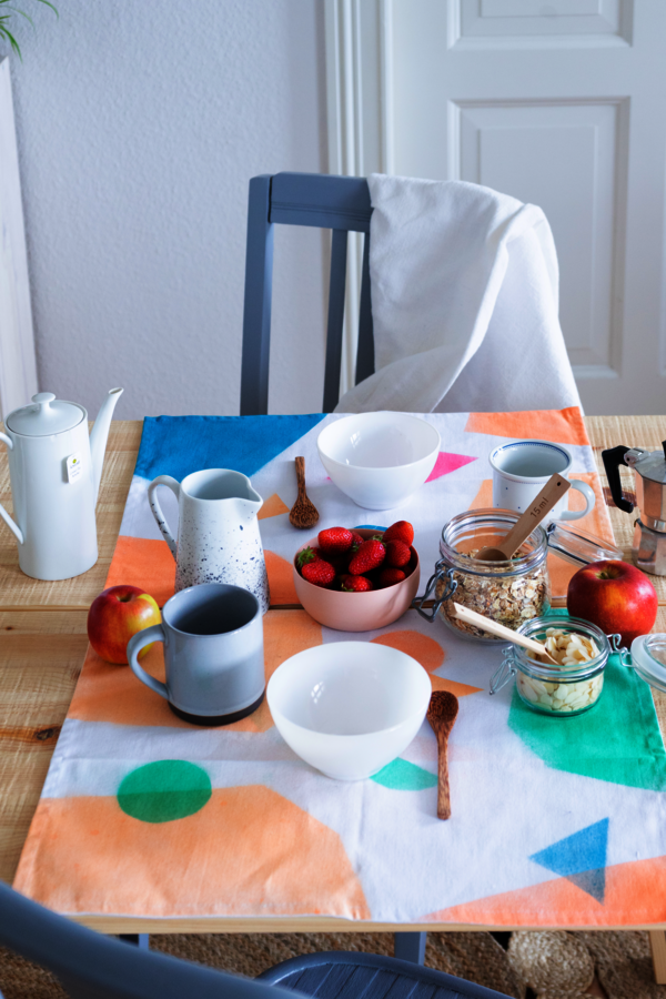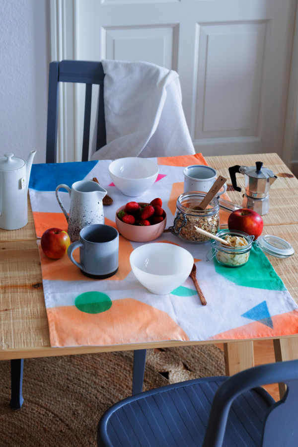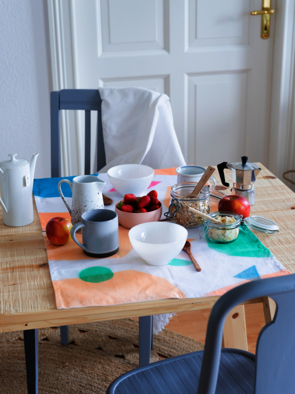 Nach der Trocknung (ca. 2 Std.) im vorgeheizten Backofen (8 Min./150 °C) oder durch ein Tuch bei Baumwolltemperatur bügeln (3 Min./30 x 30 cm).
