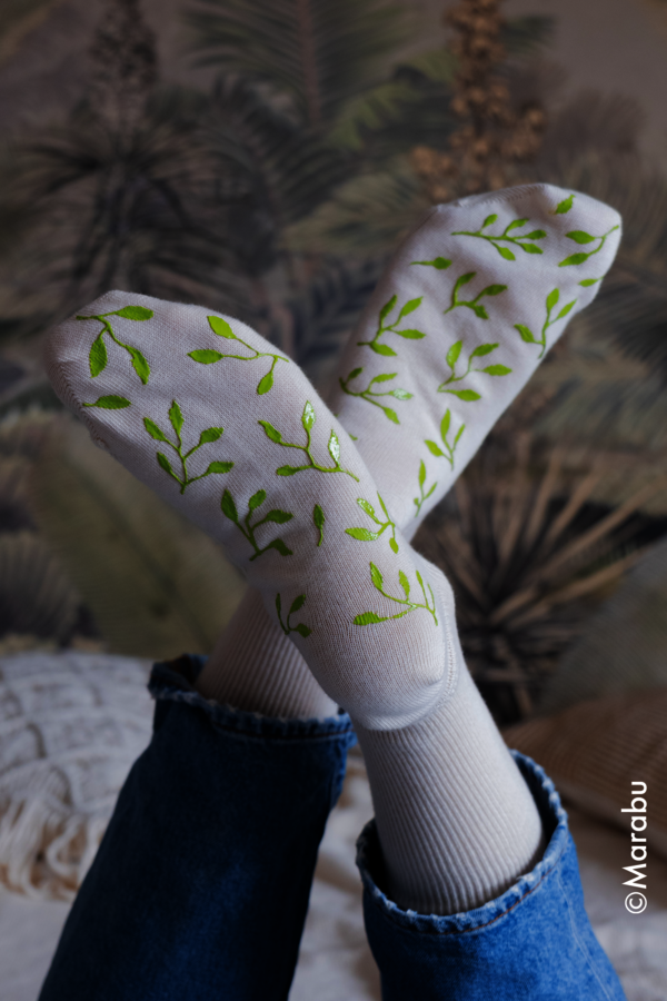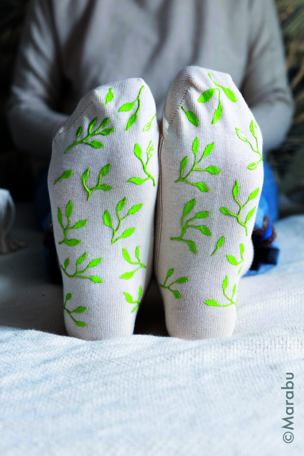 Der Marabu Sock Stop ist mit vielen Marabu Textilfarben kombinierbar. Wichtig dabei ist, dass das Textil appretur- und weichspülerfrei ist. Zudem kann der Sock Stop nur auf eine farbfreie Fläche aufgetragen werden, die zu kombinierenden Textilfarben können umliegend aufgebracht werden.