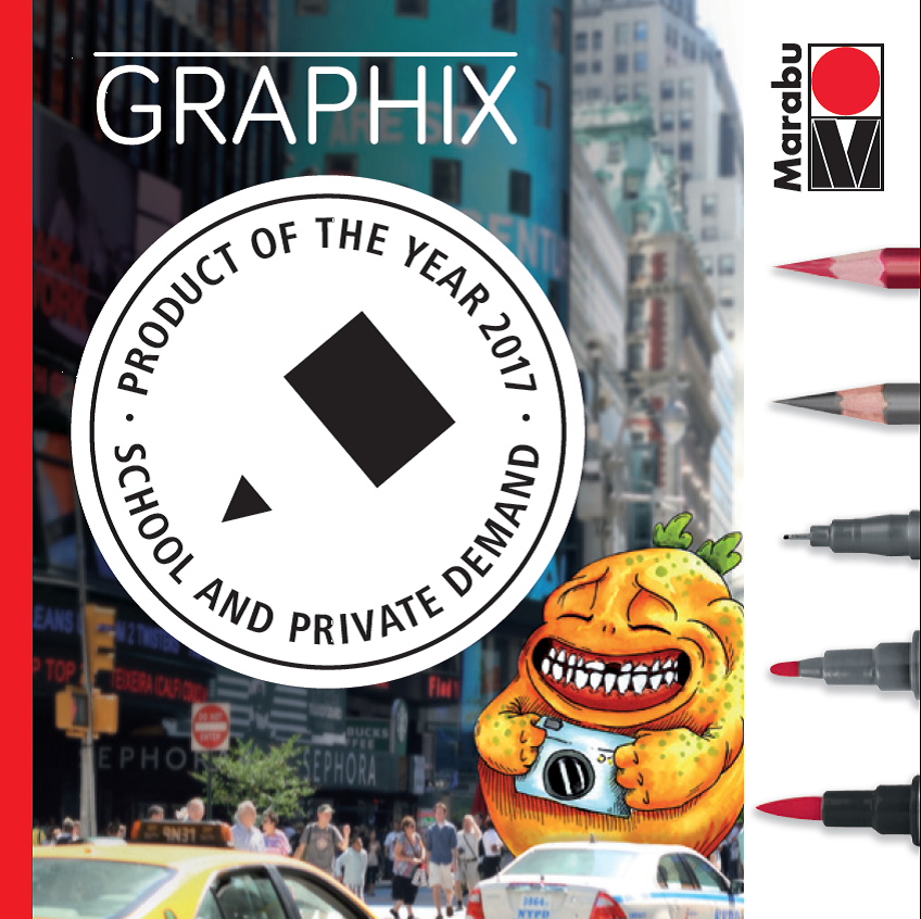 Jedes Jahr prämiert der Verband der PBS Markenindustrie Produkte mit zukunftsweisenden neuen Ideen in funktionsgerechter Ausführung. Die unabhängige Jury aus namhaften Branchenpersönlichkei-ten verlieh am Samstag, 28. Januar Marabu Graphix den Titel Produkt des Jahres 2017 in der Kate-gorie "Schul- und Privatbedarf". Die Laudatorin, Christine Schmidhuber vom Bundesverband Sekretari-at und Büromanagement e.V., Bremen, lobte das Produkt als den „…Hippster der PBS-Szene.“
