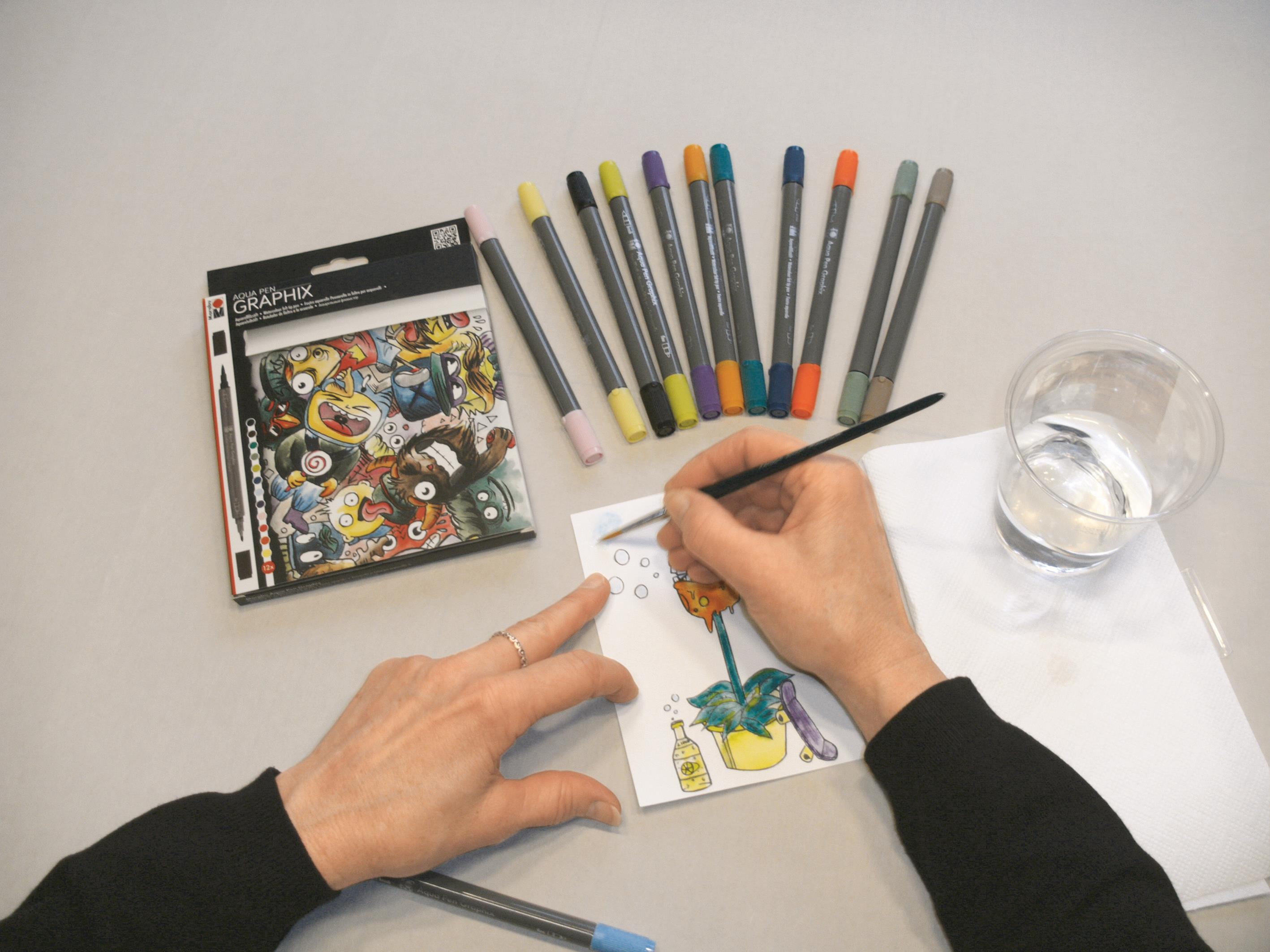 Marabu Graphix bietet die richtigen Tools, um der Inspiration freien Lauf zu lassen und kreative Ideen zu Papier zu bringen. Das Sortiment aus Stiften bietet alle Möglichkeiten: entspannende Scribbeleien beim Telefonat, illustrierte Träumereien beim Vortrag oder gezeichnete Erinnerungen beim Durchblät-tern alter Fotos. Die Stifte der Graphix-Serie lassen vollkommene Bewegungsfreiheit und begleiten durch die Welt. Das Programm umfasst hochwertige Blei und Aquarellstifte, Fineliner und wasserbasie-rende Aqua Pens. Sie werden begleitet von drei Colouring Card Sets, die dem Bedürfnis gerecht wer-den, sich vom Alltag zu lösen und in die Welt der Farben und Formen einzutauchen. Marabu Graphix animiert trendunabhängig zu vielfältigen Anwendungsmöglichkeiten. Bereits die Präsentation am POS, Werbemittel, Flyer, Videos und der eigene digitale Webauftritt bieten Inspiration und machen Lust auf Zeichnen.