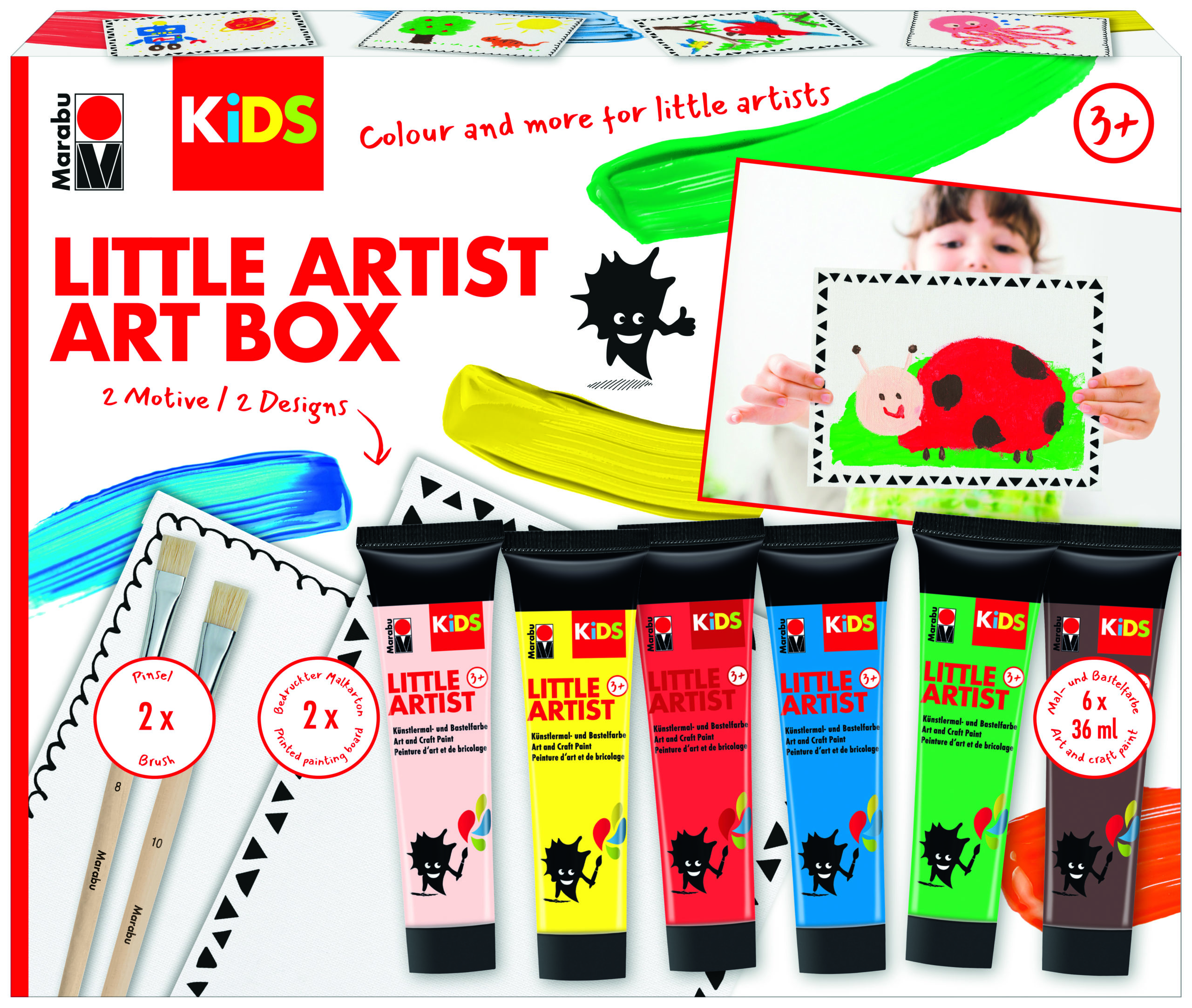 Kinder lieben es zu malen! Das Marabu KiDS Sortiment wurde speziell für Kinder ab 3 Jahren entwickelt. Das Programm überzeugt seit 5 Jahren mit kreativen und sicheren Produkten mit denen Kinder frei und ungehemmt eine Welt voll kreativer Ideen erobern. Ganz neu mit dabei sind jetzt die KiDS LITTLE ARTIST Art Boxen.