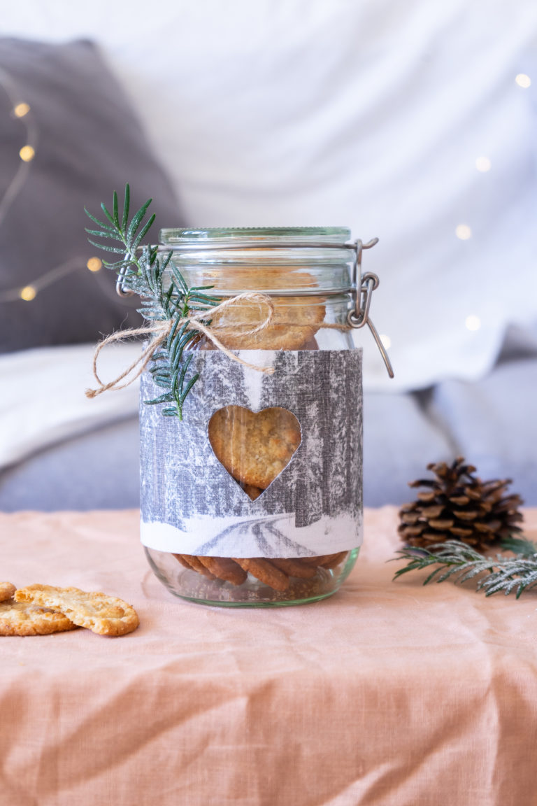 Everyone loves home-made biscuits at Christmas. So why not draw the eye to the biscuit jar too with a lovingly designed fabric wrap.
