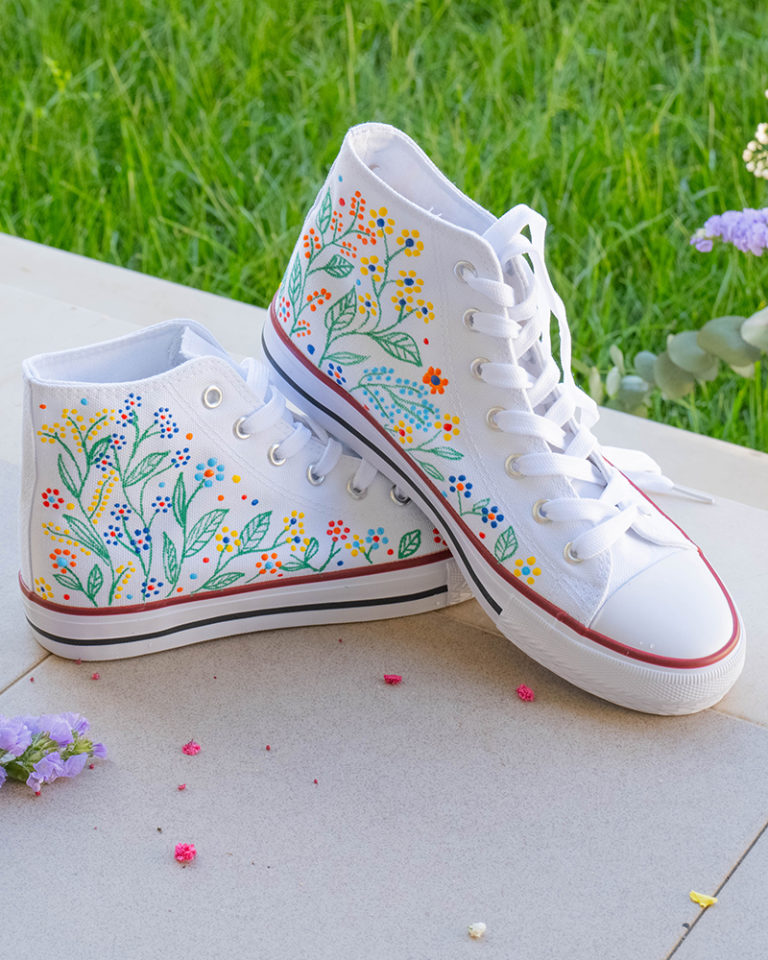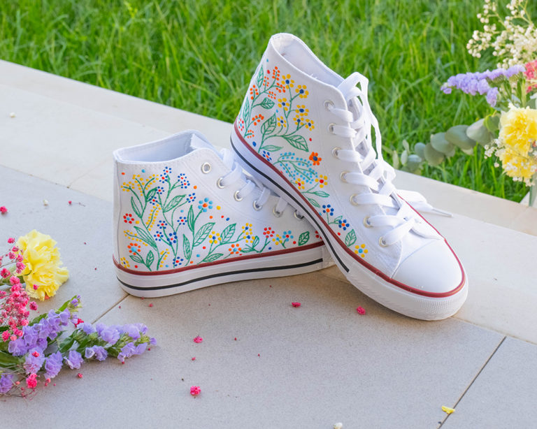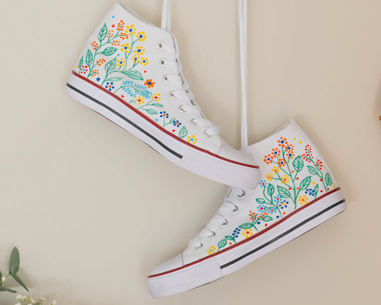 Flower sneakers decorated with Marabu YONO Marker and Marabu Dot Pen