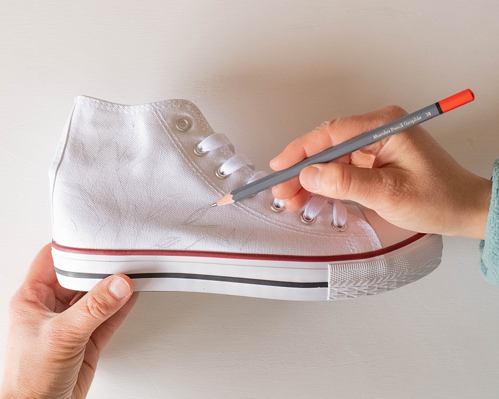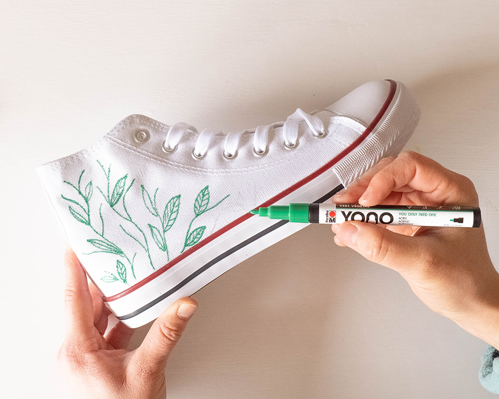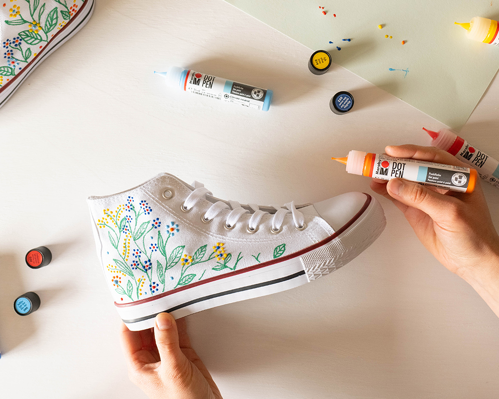 Decorating plain white sneakers with a beautiful floral motif is effortless with Marabu Dot Pens!