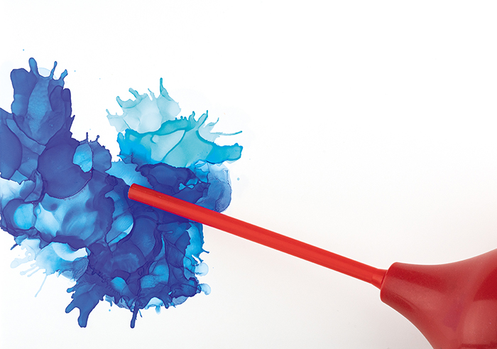 Limitless design freedom through a wide range of pouring techniques and creative designs with Alcohol Ink. Various tools and resources can be used to create different effects. The only thing you need for COLOUR SPLASH technique is a little bit of air.
