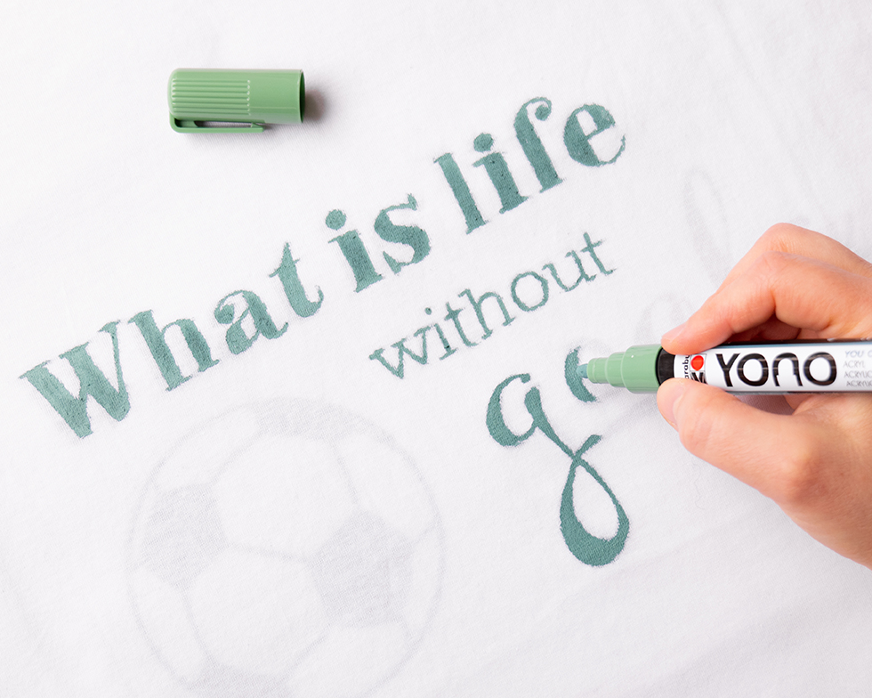 Fashion t-shirt with football/soccer motif and Marabu YONO marker