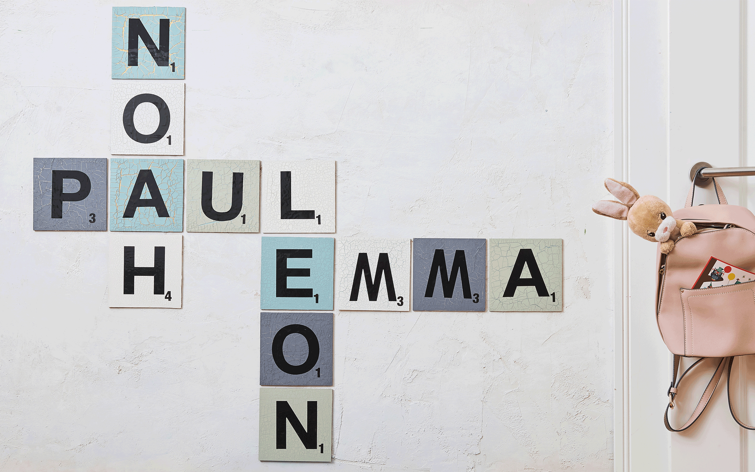 These DIY letter tiles in vintage style, which have been created with effect paints from the Marabu Home & Decoration range, are perfect for children’s rooms. The paint acquires its shabby look from the ICELAND CRACKLE 2-component system, which lets the topmost layer of paint rupture and thereby creates the nostalgic cracked look. Combined with COLORADO GOLD, which shimmers discreetly but clearly through the cracks, the Scrabble letter tile becomes a real eye-catcher. Who would not want to drop in and play?
