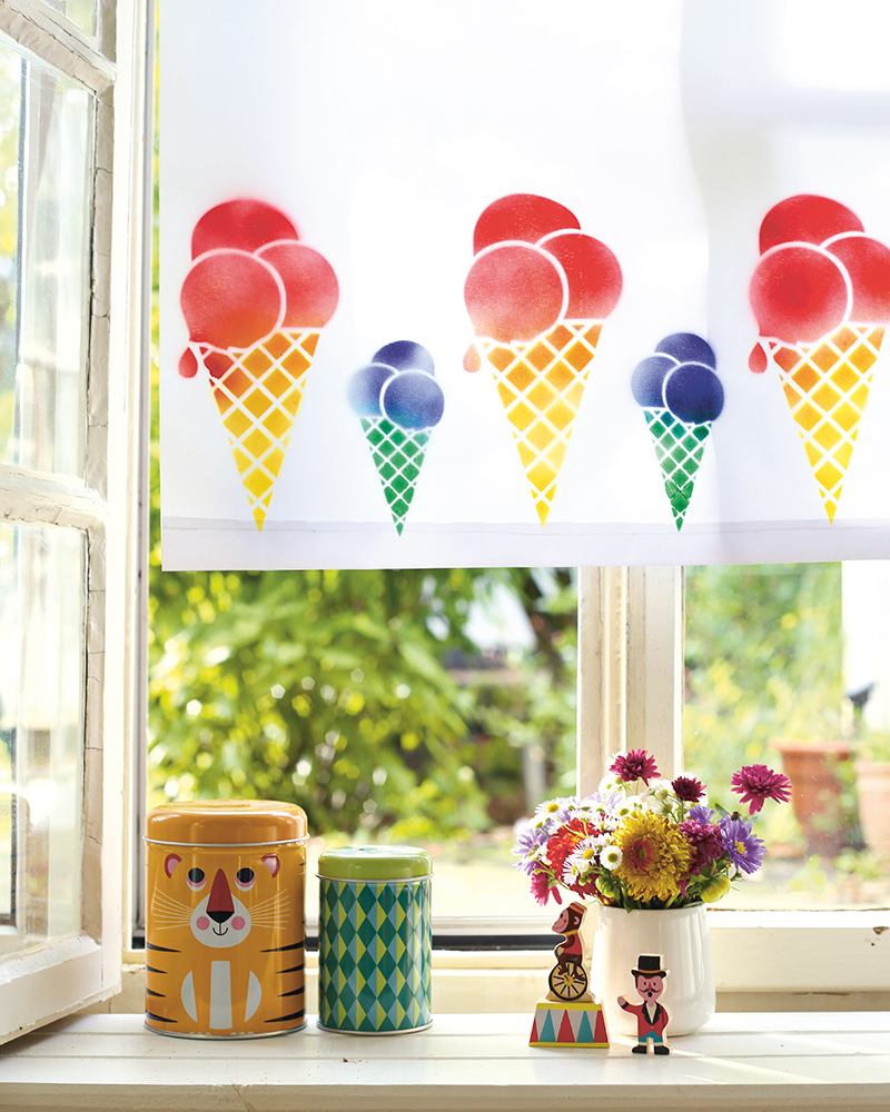 This window display will not only be a hit with the kids: the colourful ice cream cones are sure to light up everyone’s faces. You can recreate the design yourself in next to no time with the help of Marabu Textil Design Spray and the Ice Cream Cones stencil.