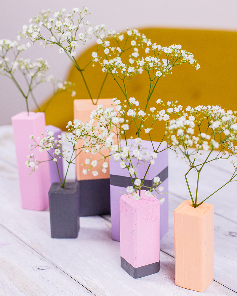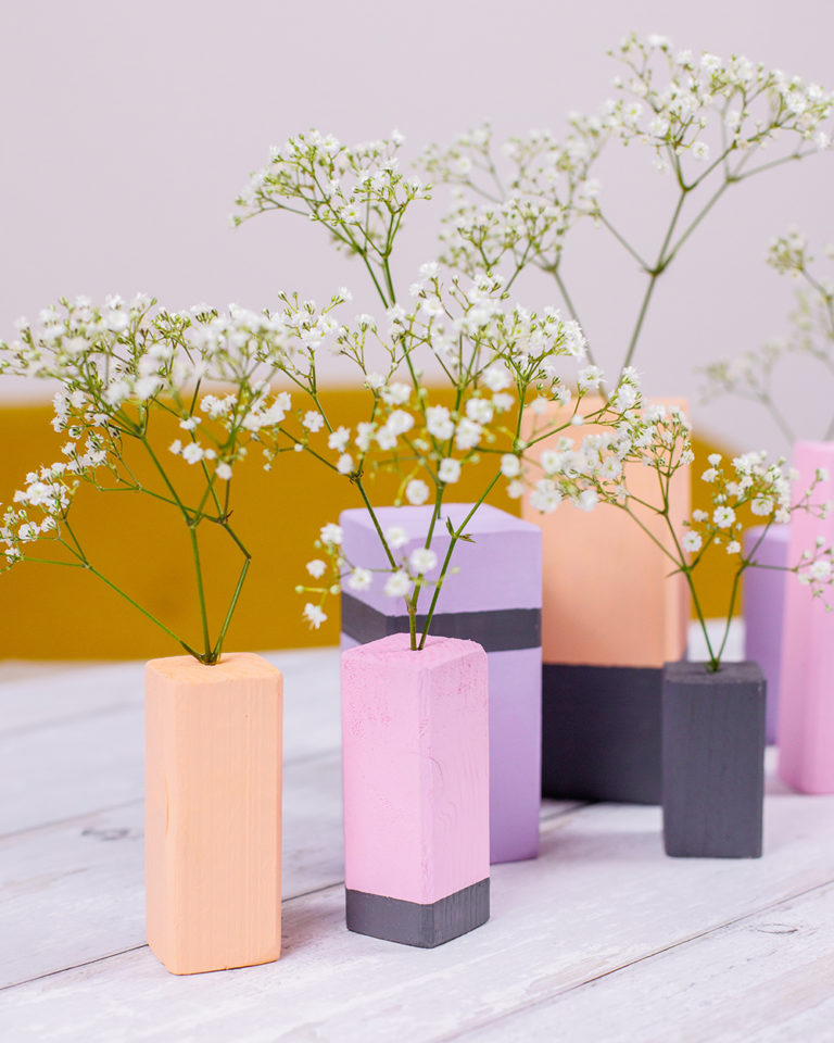 A tribute to spring: crafting these wooden block vases is a simple task. The gentle pastel hues, paired with delicate gypsophila, offer a unique and refreshing way to infuse any space with the spirit of spring, all while repurposing old wood scraps.