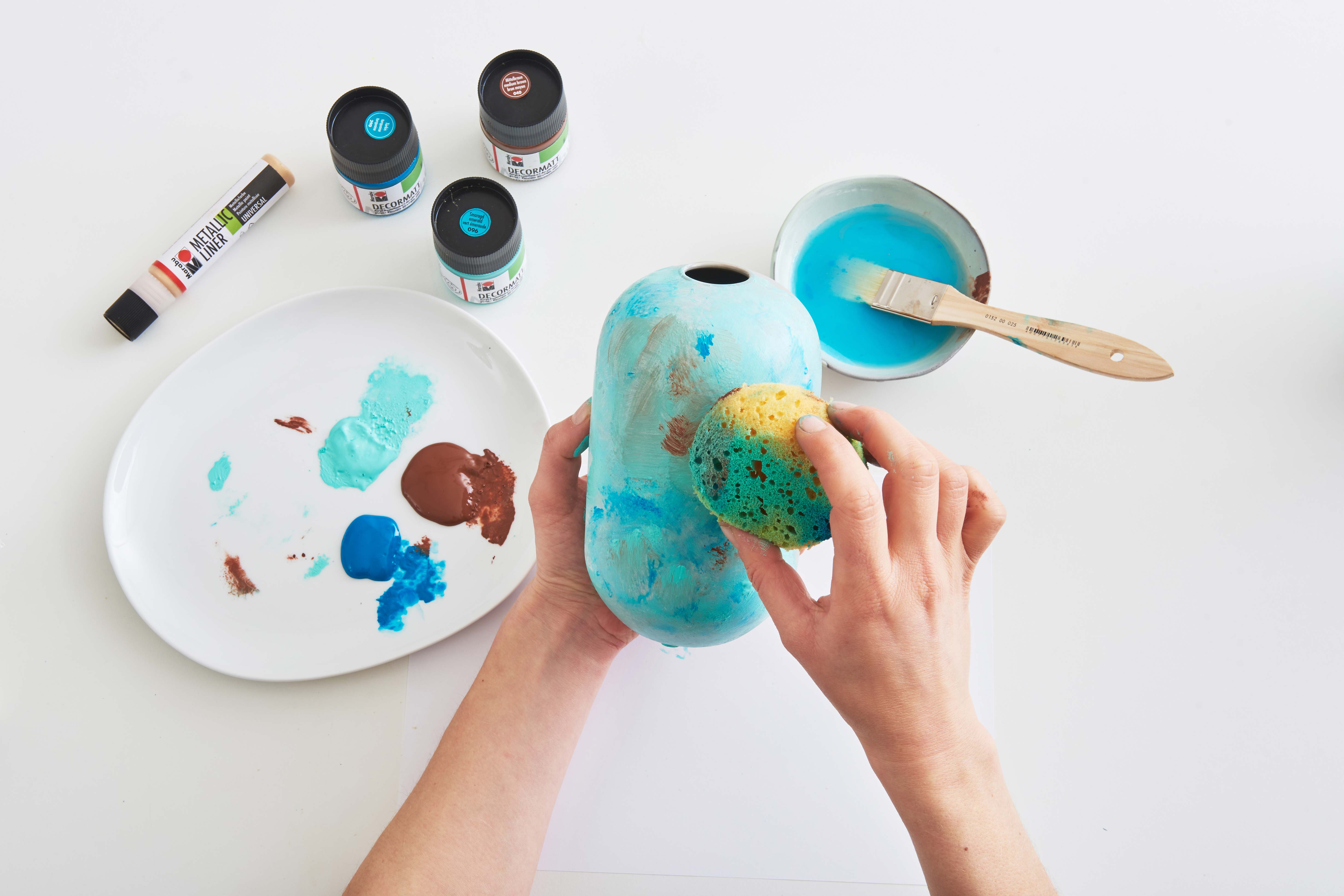 This fine item is a highlight for any home décor with its antique charm, even without flowers. With a few DIY steps a simple white primed container is given the look of an antique vase with a realistic patina effect. The HAVANNA PATINA Vintage Style set offers the colour shades and tools required from the Marabu Home & Decoration range.