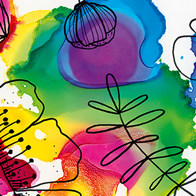The instructions provided in the new brochure make it quick and easy to learn multiple techniques such as wispy layers, colour splash, masking, wipe stencilling or drops. The new alcohol-based Marabu Permanent Markers optimally complement the Alcohol Inks and can be used to additionally decorate backgrounds created using Alcohol Inks once dry, for example with text, drawings or additional details. Furthermore, Marabu Fixogum can be optimally used in combination with the Alcohol Inks as a masking agent.