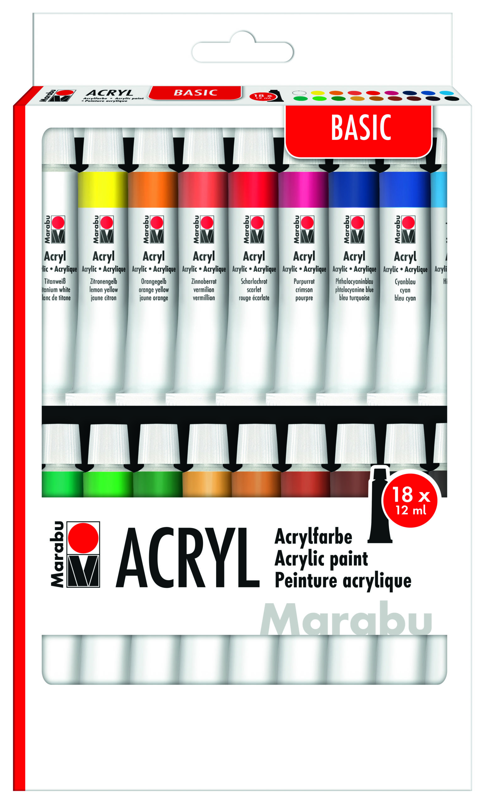 The conversion of all starter sets of Marabu acrylic, watercolor, and oil paints to fully recyclable cardboard packaging has been successfully completed. The set packaging and inlays for the 12 ml assortments are now made entirely of cardboard.
