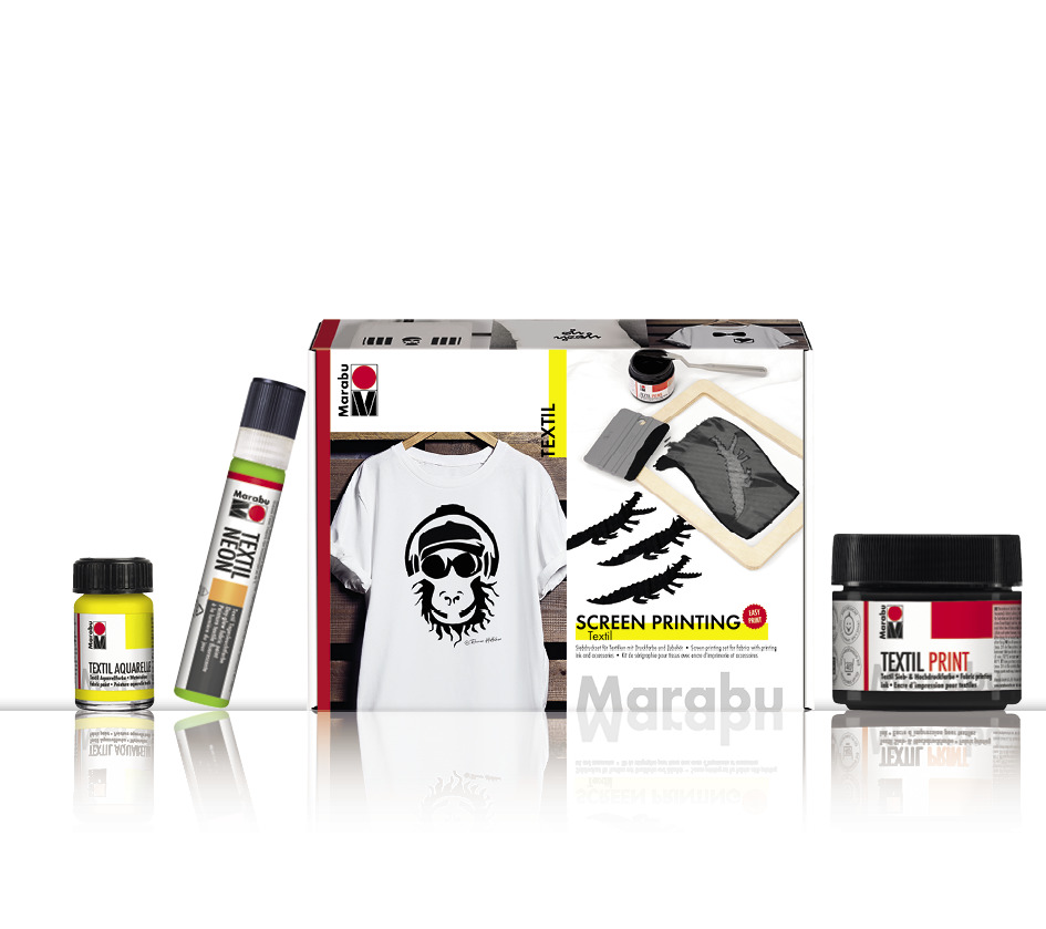 Marabu Textile Print & Colouring is the range hot off the press for painting and printing on textiles. The innovative, coherent overall concept has been developed for individually designing clothing, textile accessories and home textiles. It impresses with special paints for print and design techniques, fascinating effect paints, simple to use products and attractive sets. Completely new application options can be unlocked with Textile Print & Colouring.