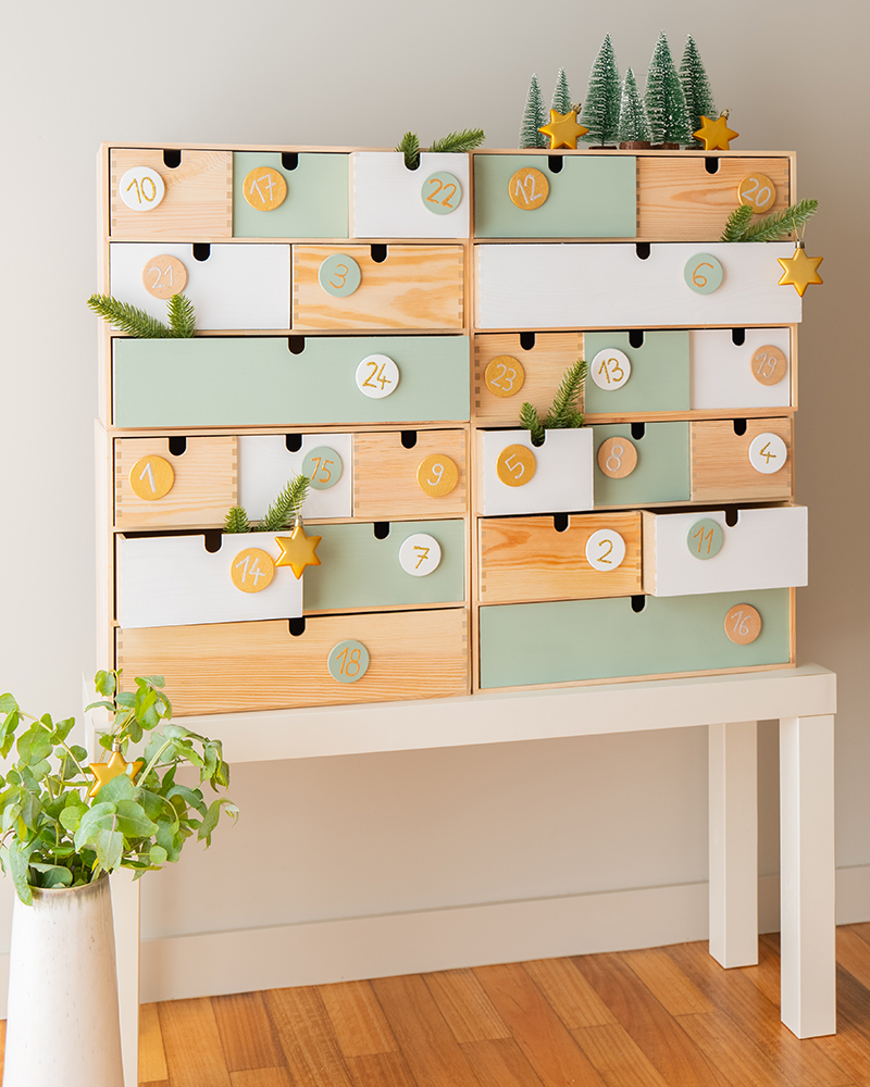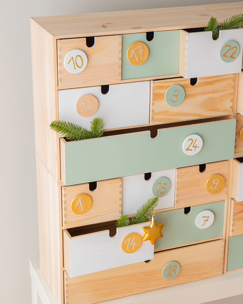 Commode du calendrier de l’Avent avec Marabu Chalky Chic Spray & Co.