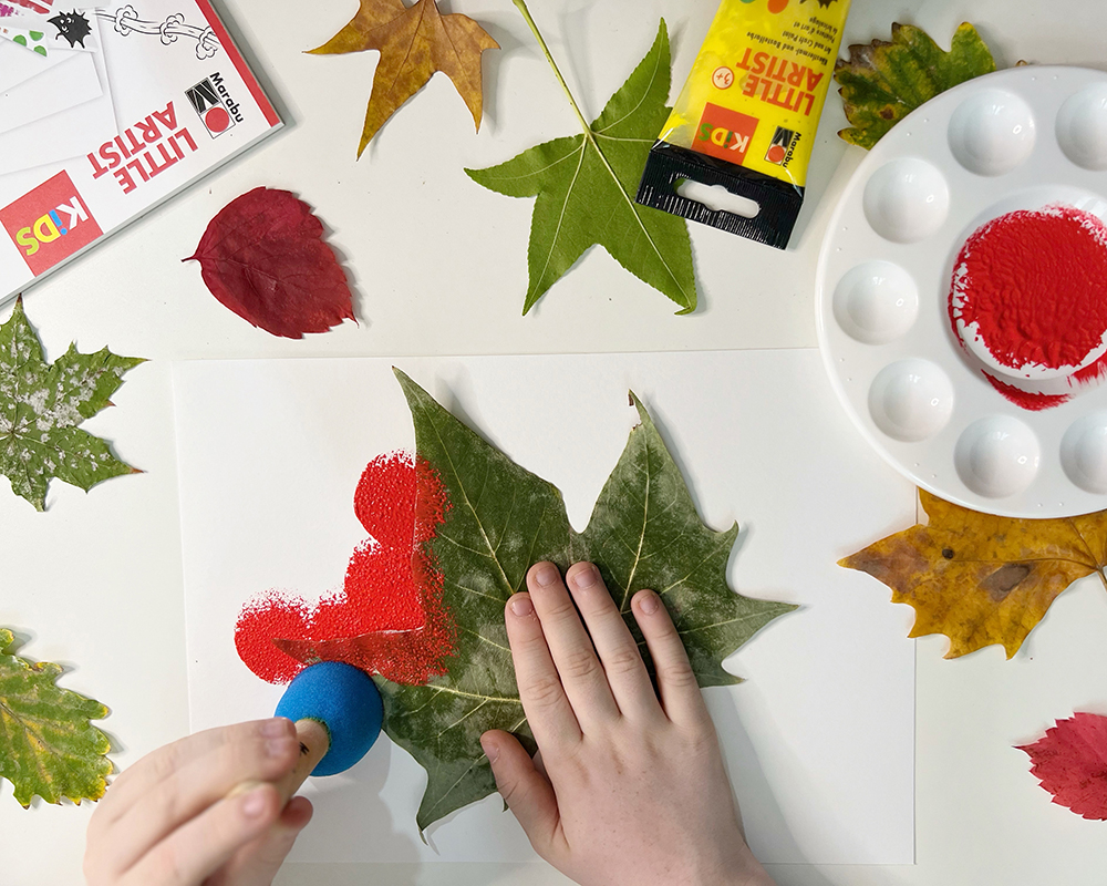 Feuilles d’automne au pochoir avec Marabu KiDS Little Artist
