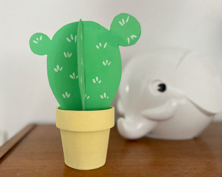 - Pour finir, verser de la colle de bricolage Marabu KiDS dans le fond du pot de fleurs et coller le cactus en carton.