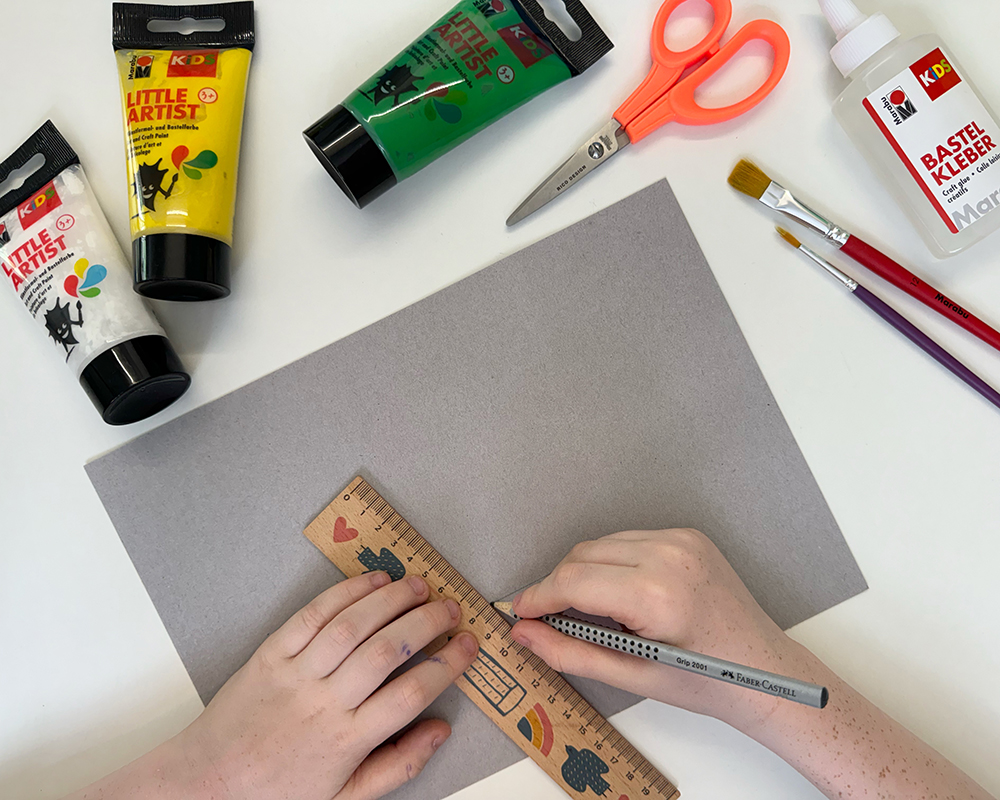 - Avec la peinture blanche Marabu KiDS Little Artist et un pinceau fin, on peut encore peindre de petits accents sur le cactus en carton. Une fois qu'ils ont séché, un cactus en carton doit être découpé aux 2/3 par le haut et l'autre cactus en carton doit être découpé aux 2/3 par le bas.