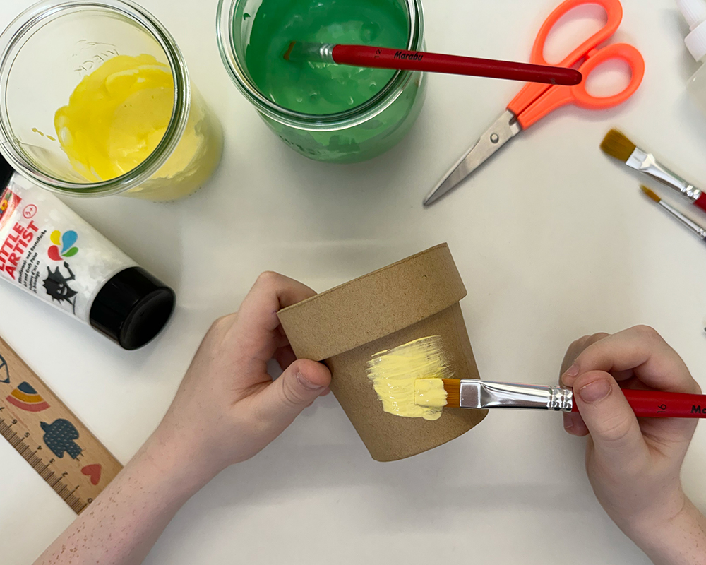 - Pendant que le cactus sèche, le pot de fleurs en carton peut être peint.