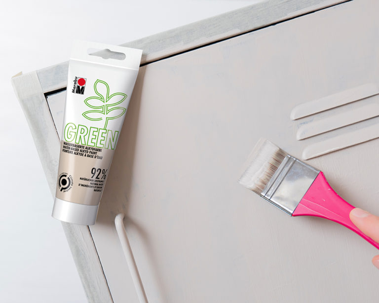 La petite armoire métallique rend de bons services depuis des années et mérite un nouveau look. Il suffit d’une bonne idée, de pinceaux et de teintes adaptées de notre Marabu GREEN. Un relooking parfait !