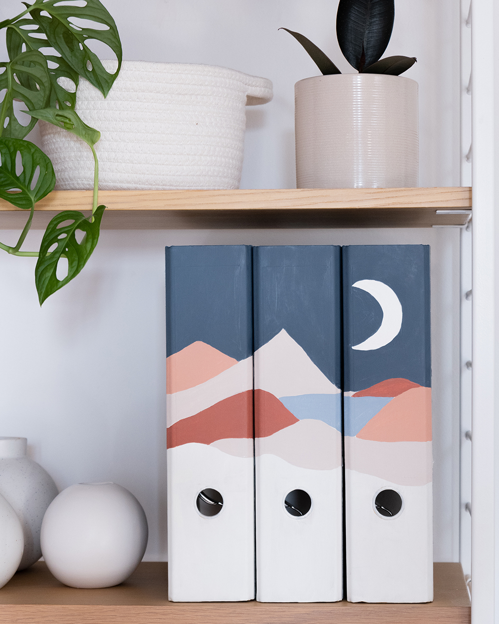 - Appliquer ensuite une couche de fond couvrante sur le dos du classeur avec une couleur claire. Selon la couleur du dos du classeur, plusieurs couches peuvent être nécessaires pour obtenir un résultat couvrant. La peinture doit toujours bien sécher entre les différentes couches.